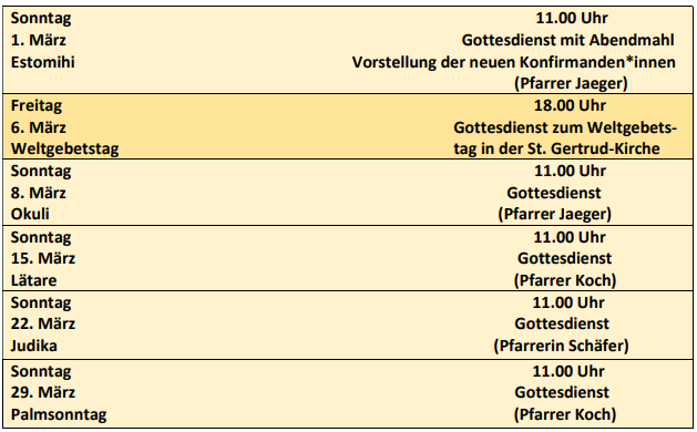 Gottesdienste im März 2026
